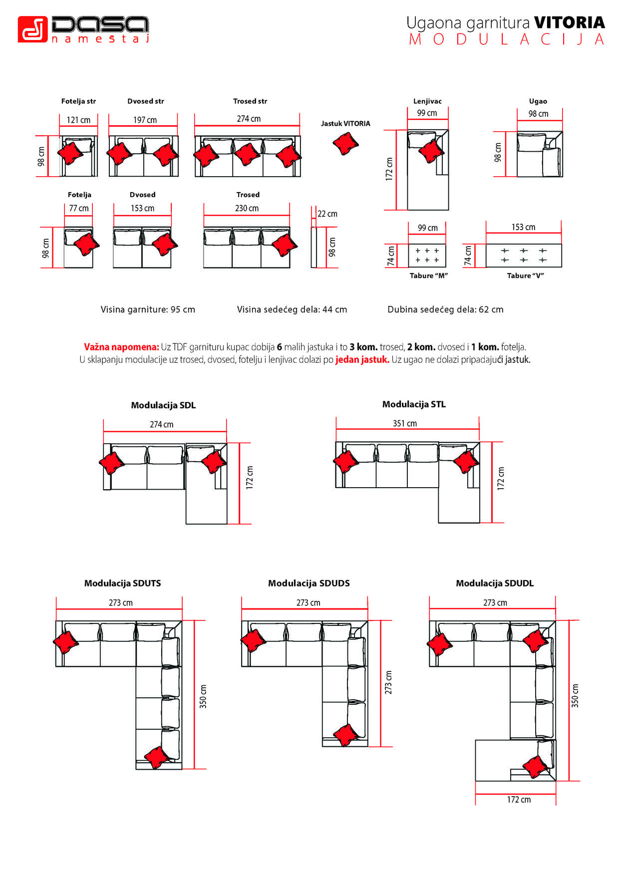 - Oznake "X" su za ekstra kvalitetnu vrstu mebla i eko kože